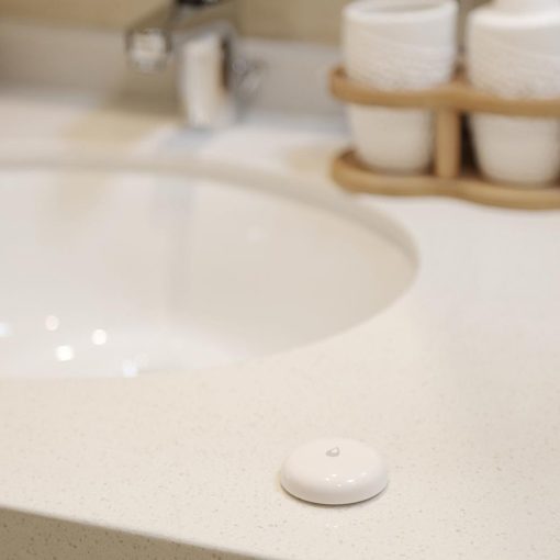 Kích thước chỉ 50 × 50 × 15 mm, dễ dàng đặt nằm trên sàn hoặc giấu kín trong các hốc nhỏ gần nguồn nước. Không cần đi dây, không cần lắp đặt phức tạp.