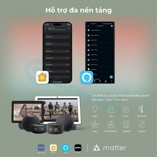 Cube T1 Pro sử dụng giao tiếp Zigbee, tương thích hoàn toàn với hệ sinh thái Aqara và các nền tảng nhà thông minh lớn (Apple HomeKit, Alexa, Google Home khi kết nối qua Hub hỗ trợ). Không cần WiFi – nên bạn không phải lo nghẽn mạng hay trễ tín hiệu.